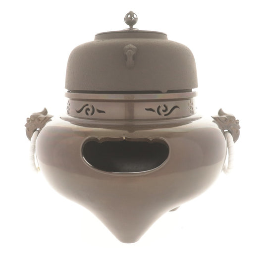 ■ 金森紹栄 茶釜 茶器 炉釜 金属 伝統工芸 美術 茶道具 全長33cm 総重量 約8.7kg 箱付き