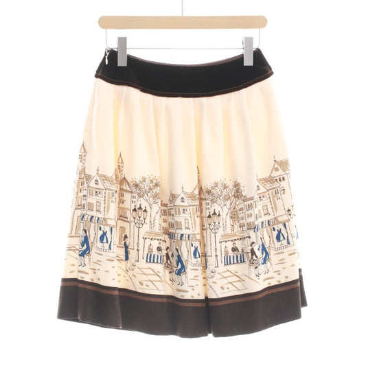 ■ エムズグレイシー スカート ひざ丈 ボトムス 日本製 ベロア 柄 レディース 38(M相当)オフホワイト ブラウン系