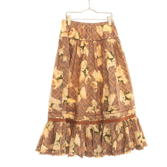 ■ ピンクハウス スカート ボトムス くま チェック 裾フリル ロング レディース ブラウン系