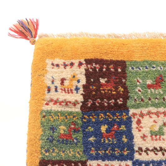 ■ ギャッベ ギャベ チェアマット 22-5876 ペルシャ 天然ウール 手織り 耐久性 イラン シラーズ産 37×42 マルチカラー 未使用