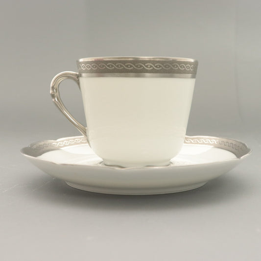 ■ BERNARDAUD LIMOGES B&C ベルナルドリモージュ カップ ソーサー 1組 プラチナ ティーカップ 小皿 柄 フランス 全長8.8cm 13cm ホワイト