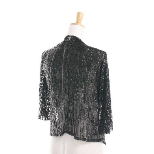 ■ MARNI マルニ ノーカラージャケット 長袖 アウター ボタンなし スパンコール 装飾 イタリア製 レディース 40 (L相当) ブラック 黒