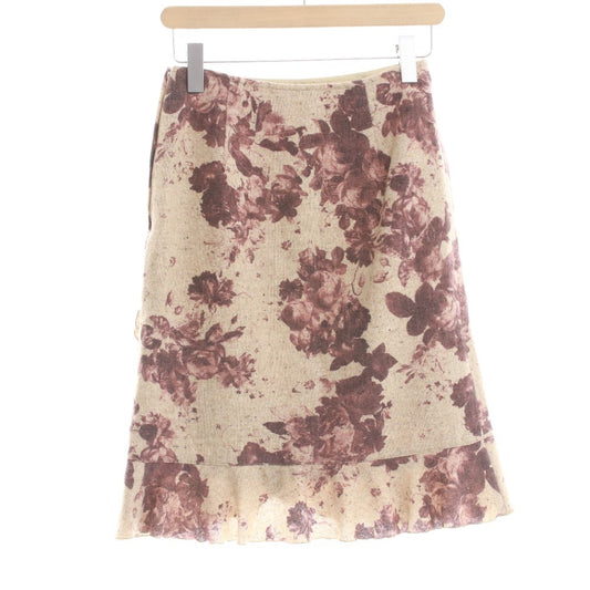 ■ レストローズ スカート ひざ丈 ボトムス 日本製 フリル Aライン 薔薇 レディース M ワイン ベージュ系