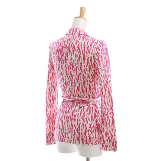 ■ DIANE von FURSTENBERG ラップワンピース 長袖 トップス アウター トップス 襟 総柄 前紐 レディース 0 (XS相当) パープル系