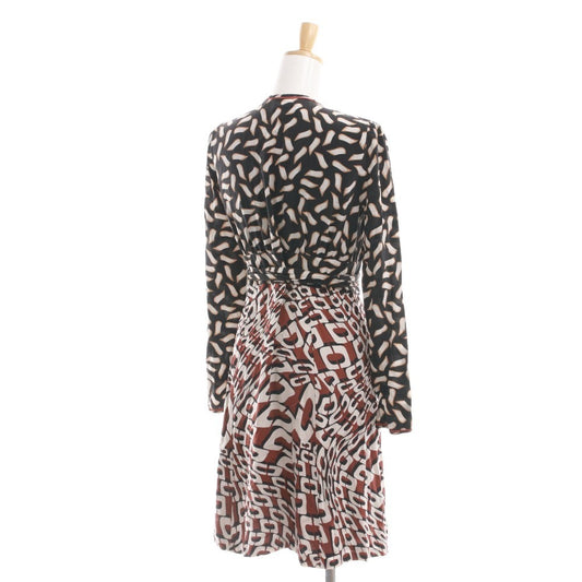 ■ DIANE von FURSTENBERG ラップワンピース 長袖 トップス アウター ひざ丈 総柄 前紐 レディース 2 (S相当) マルチカラー ブラック 等