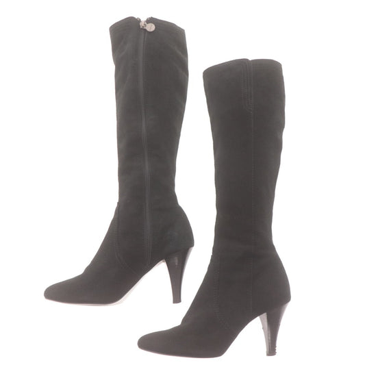 ■ JILL STUART ジルスチュアート ロングブーツ 革靴 スエード ヒール ファスナー 日本製 レディース 22 1/2 ブラック 黒