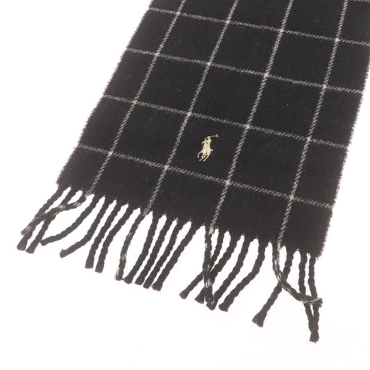 ■ Polo Ralph Lauren ポロラルフローレン マフラー チェック柄 イタリア製 ラムウール ナイロン メンズ レディース グレー ブラック 黒
