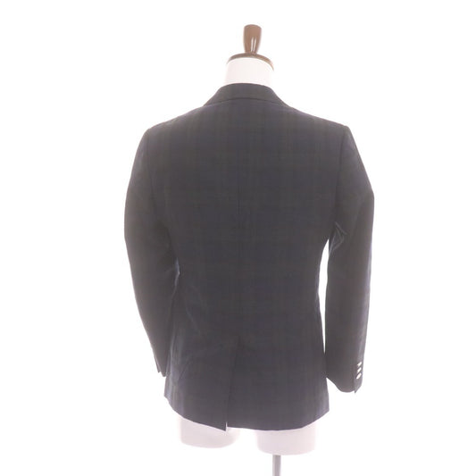 ■ EDIFICE エディフィス テーラードジャケット 長袖 アウター 襟 ボタン 胸ポケット チェック柄 日本製 メンズ 44 (S相当) ネイビー系