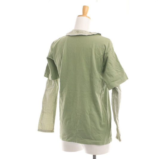 ■ カネコイサオ カーディガン カットソー 長袖 トップス チェック 袖切り替え レディース グリーン