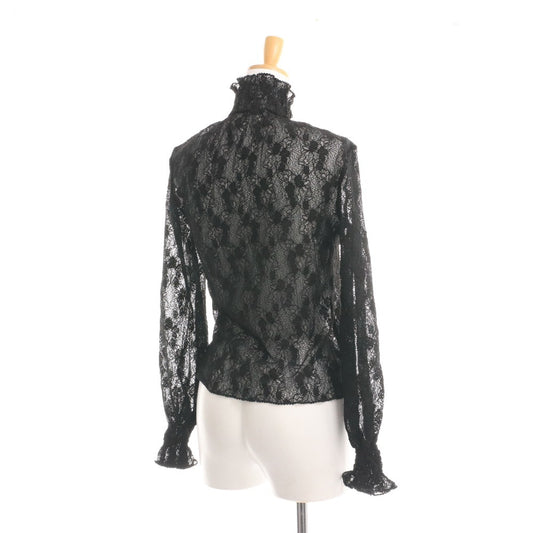■ インゲボルグ ブラウス 長袖 トップス レース ハイネック フリル レディース S ブラック
