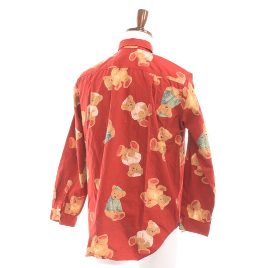 ■ ピンクハウス シャツ 長袖 トップス くま ボタンダウン 胸ポケット メンズ M レッド