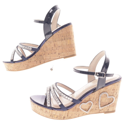 ■ ブリジットバーキン サンダル 512136 靴ウェッジソール ビジュー ハート レディース 24.5 ネイビー 付属品付き 未使用