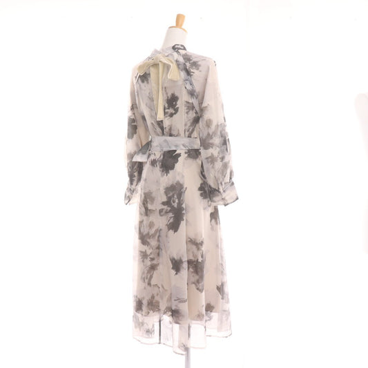 ■ SNIDEL スナイデル ロングワンピース 長袖 トップス マキシ丈 水彩 花柄 ベルト レディース 1 ホワイト ブラック