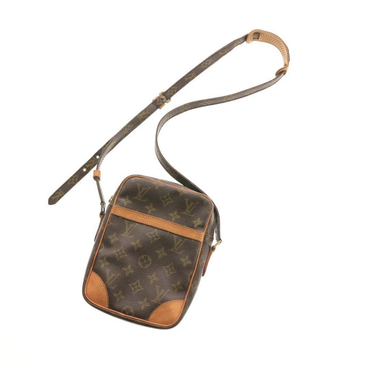 ■ ルイヴィトン モノグラム ダヌーブ ショルダーバッグ ポシェット 鞄 斜め掛け ゴールド金具 ファスナー レディース ダークブラウン