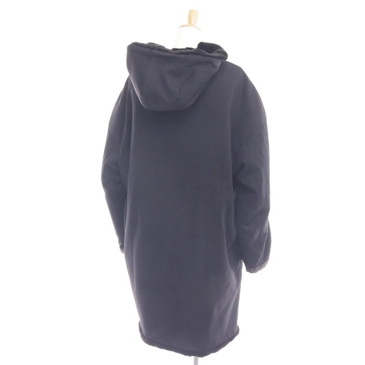 ■ Fendi coat long sleeve outerwear reversible fur hood Zucca pattern women's size 42 black with hanger