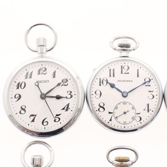 ■ SEIKO Pocket Watch 11-piece set, bulk sale 9119-0020 7550-0010 6110-0010 Tohoku Okatetsu, Rokutetsu, etc. Small second hand, new type, silver