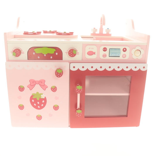 ■ Mother Garden Play Kitchen Set, Wild Strawberry Design, Wooden Pot, Knife, Cutting Board, etc., Pink and Red