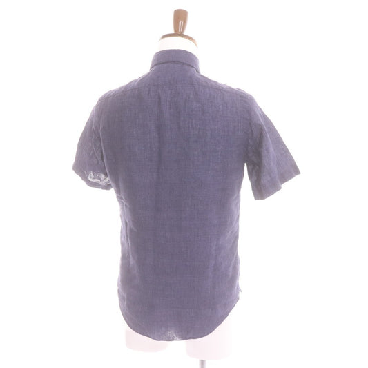 Finamore Men's Short Sleeve Shirt (35352), Made in Italy, 100% Linen, Size 37 (equivalent to XS), Navy