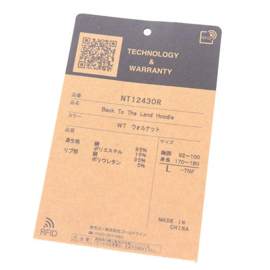 The North Face Back To Land Hoodie NT12430R, long-sleeved, fleece-lined top, Ebisu-exclusive, men's, size L, walnut and brown, with tags.