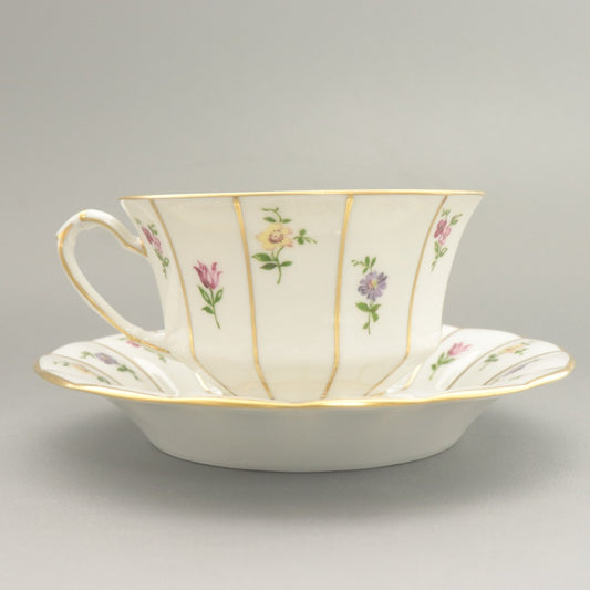 ■ Furstenberg Millefleurs Cup and Saucer Set, Coffee/Tea Cup, Small Plate, Floral Design, Length 11.7cm x 14.4cm, White/Gold