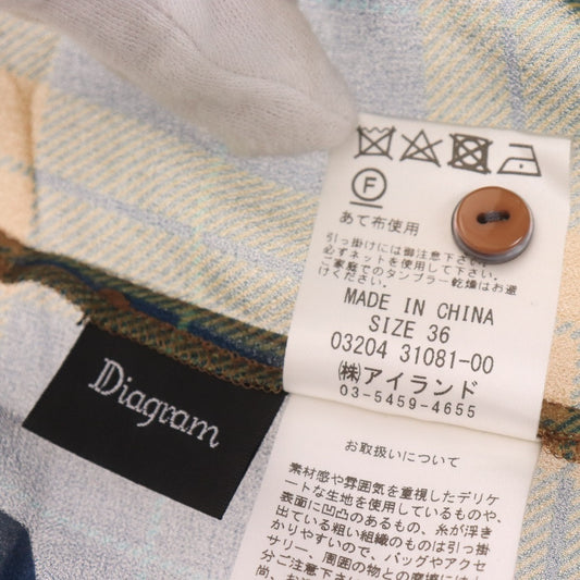 Diagram Long Dress, Long Sleeves, Bow Tie, Detachable Front Buttons, Checked Pattern, Belt, Women's, Size 36, Brown/Navy
