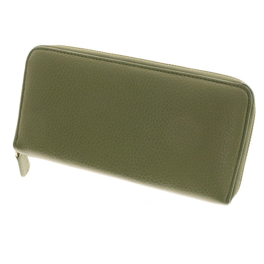 ■ mura long wallet with round zipper closure, gold hardware, coin purse, card slots, men's and women's, khaki, includes accessories