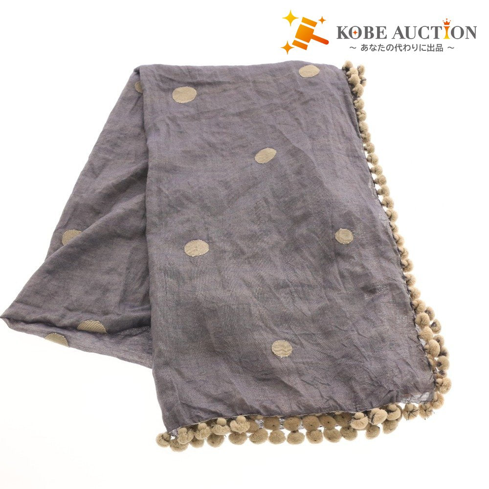 Matta Polka Dot Pompom Stole, 100% Cotton, Women's, Navy