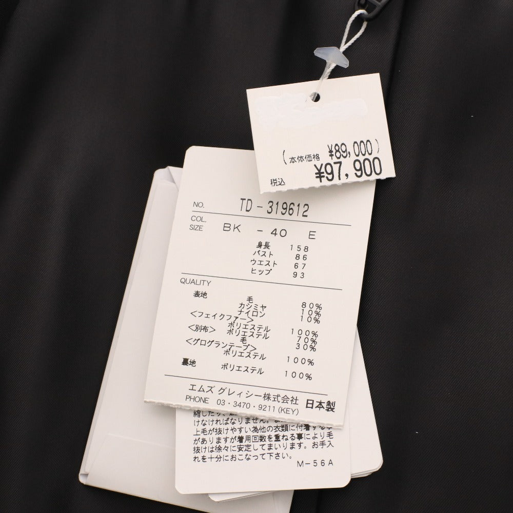 M's Gracie Long-Sleeved Coat, TD-319612, Made in Japan, Faux Fur Hood, Women's, Size 40 (Equivalent to L), Black, Tags Included, Unused