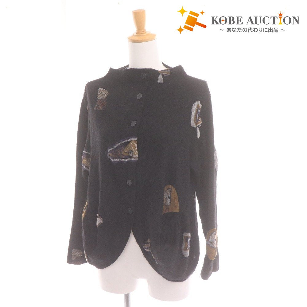 Jiu Cardigan (04222560), Made in Japan, Matsuo Print, Women's, Size 40 (Equivalent to L), Black