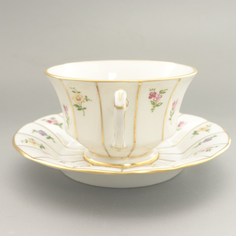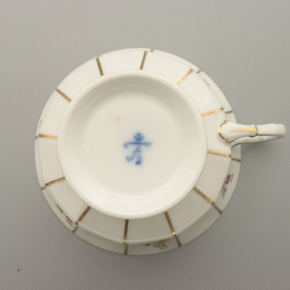 Furstenberg Millefleurs Cup and Saucer Set, Coffee/Tea Cup, Small Plate, Floral Design, Length 11.7cm x 14.4cm, White/Gold