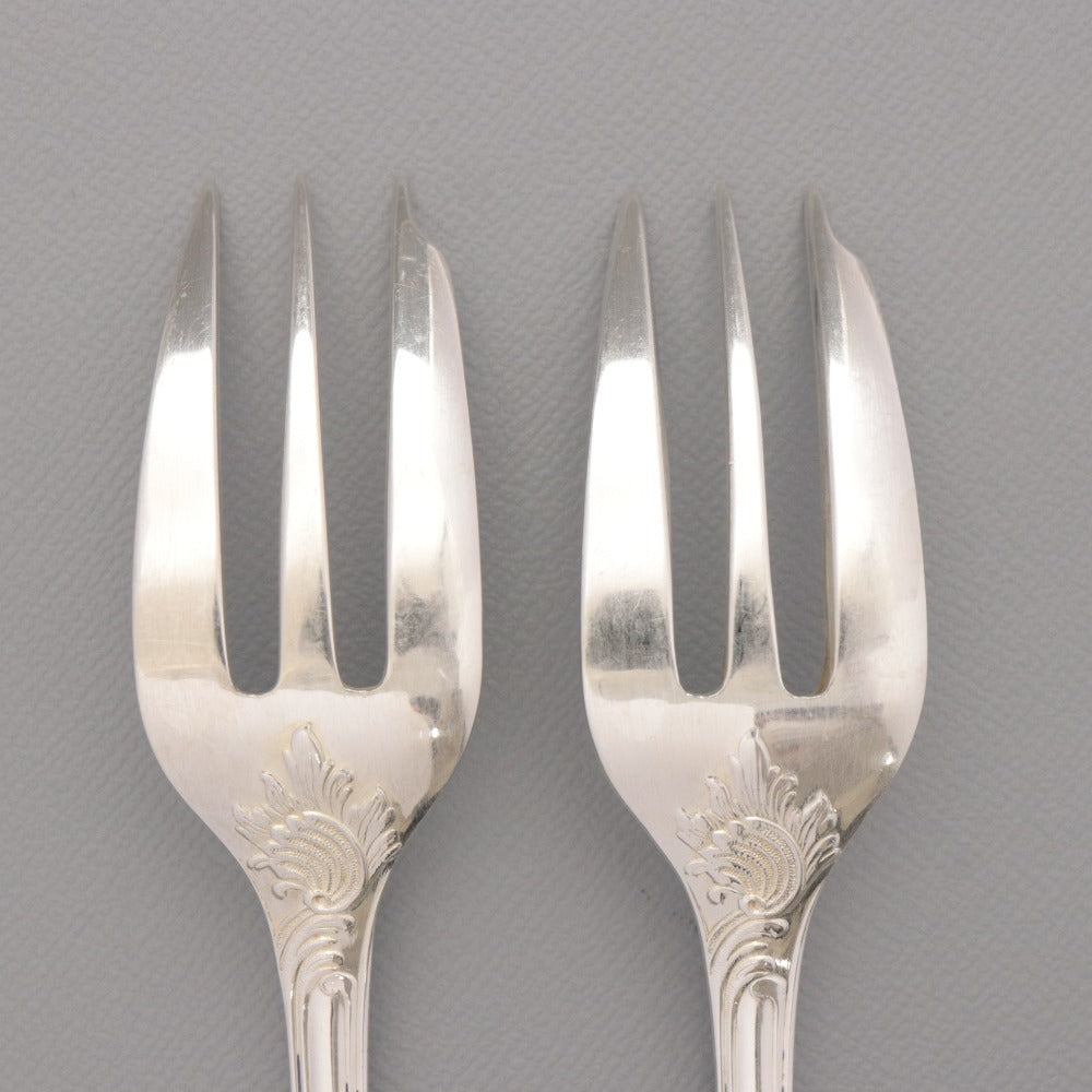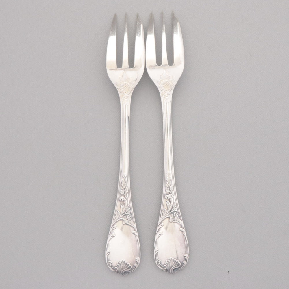 Christofle France Forks, Set of 2, All-Over Print Logo, Cake and Western-Style Tableware, Total Length 15.9cm, Silver