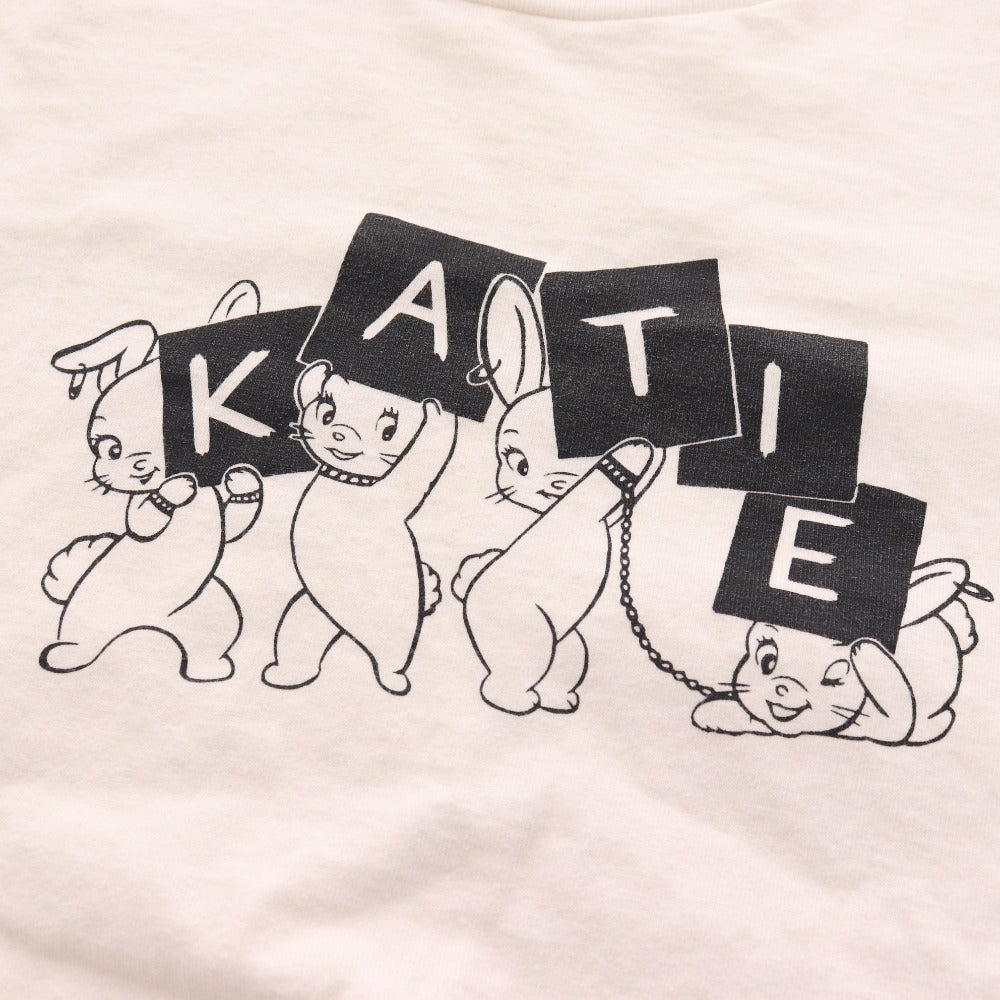 Katie Short Sleeve T-Shirt with Rabbit Print, Monochrome, Women's, Size Small, White