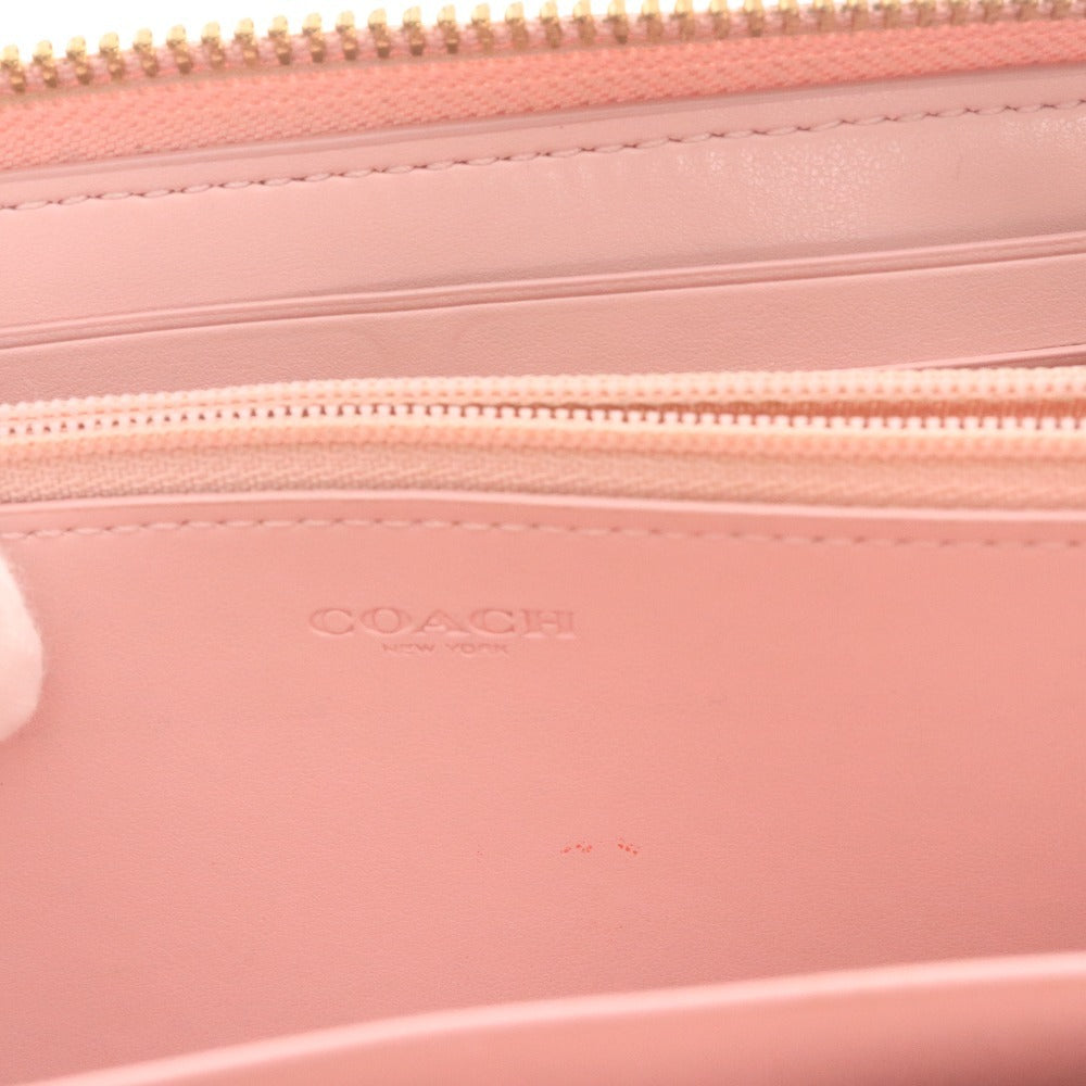 Coach long wallet K2046 54630 leather round zipper coin purse bill compartment card slots logo women's pink beige brown