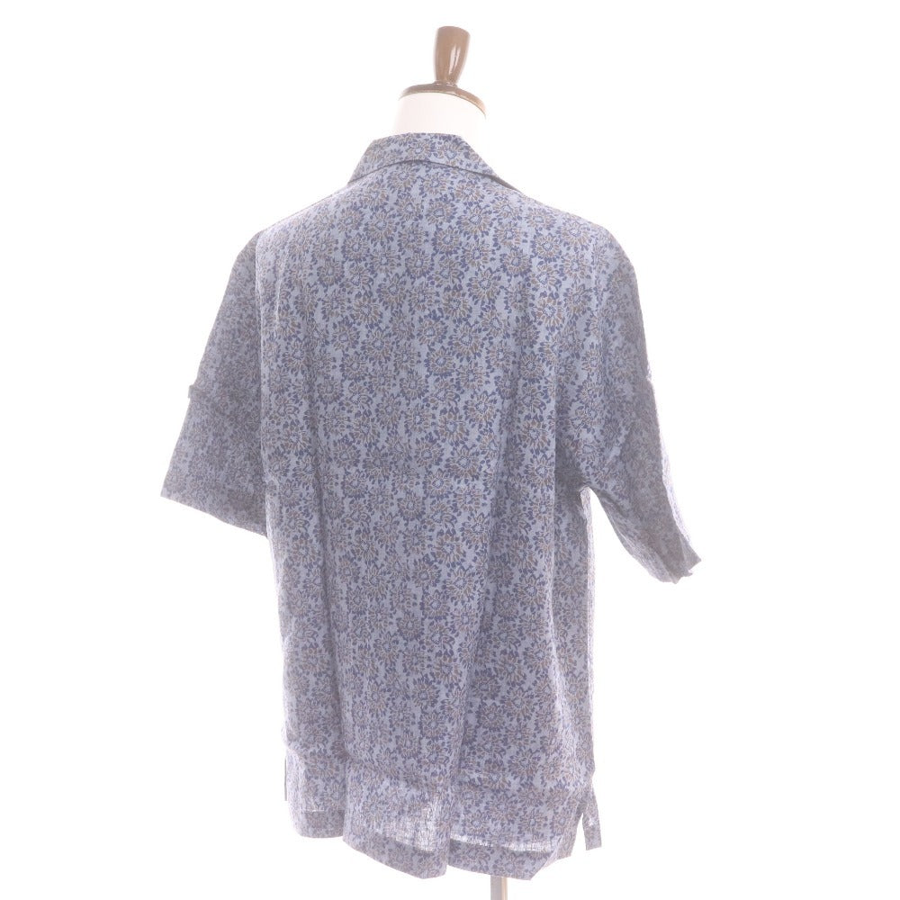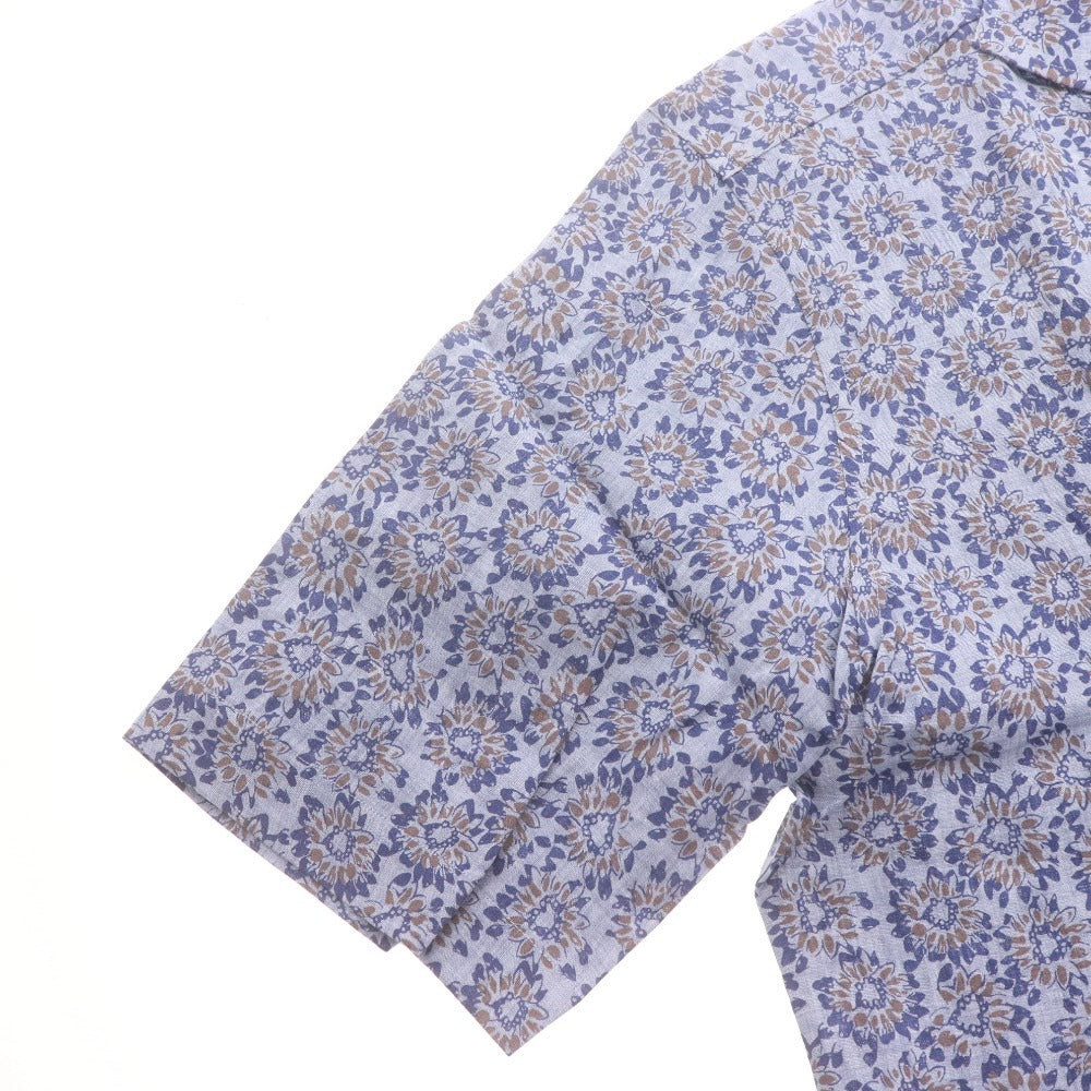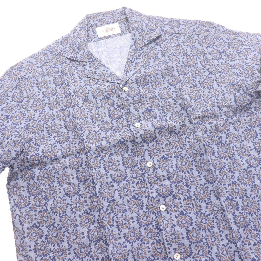 ガリポリカミチェリア オープンカラーシャツ 半袖 トップス 花柄 麻100% メンズ 50 ネイビー系 タグ付き 未使用