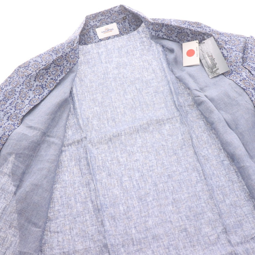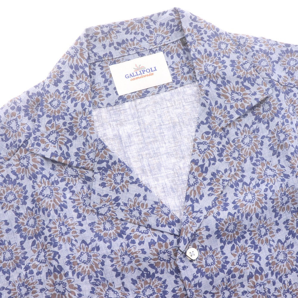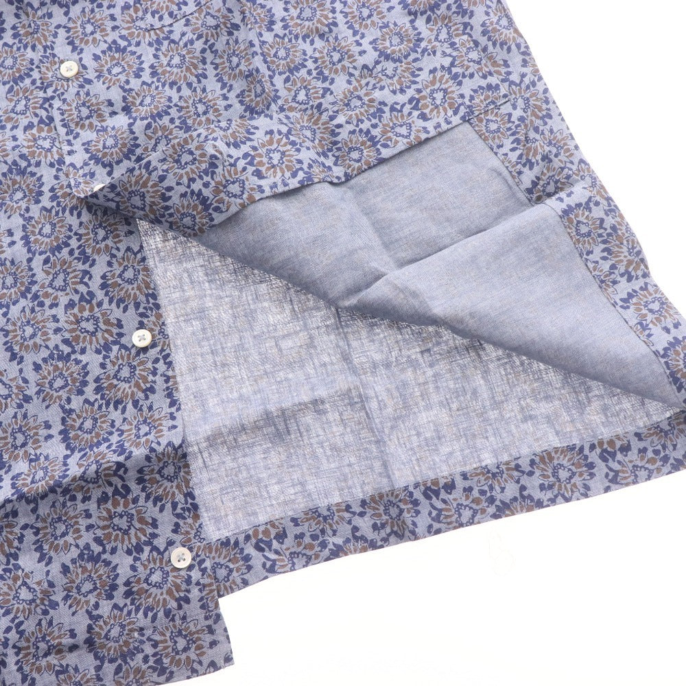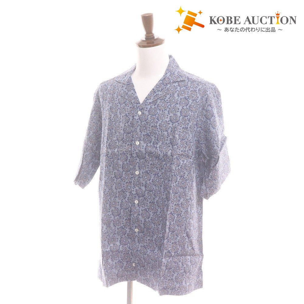 ガリポリカミチェリア オープンカラーシャツ 半袖 トップス 花柄 麻100% メンズ 50 ネイビー系 タグ付き 未使用