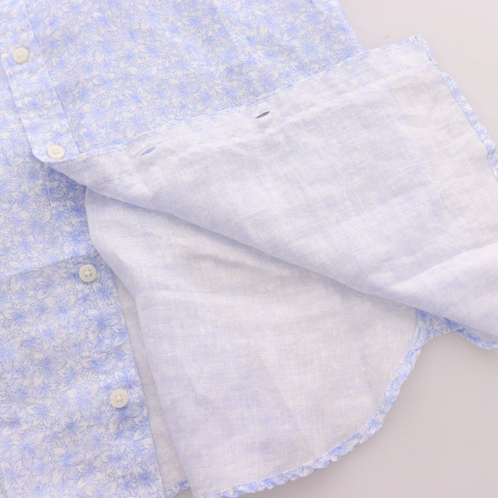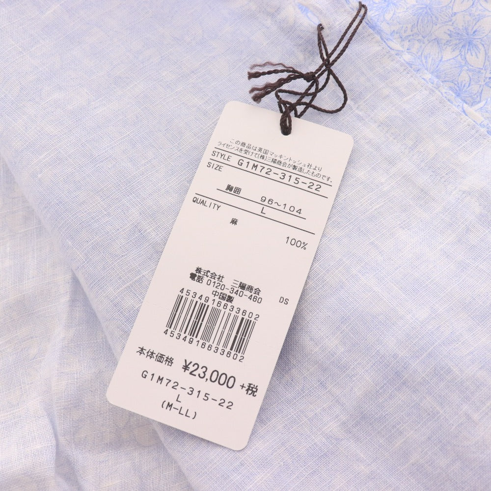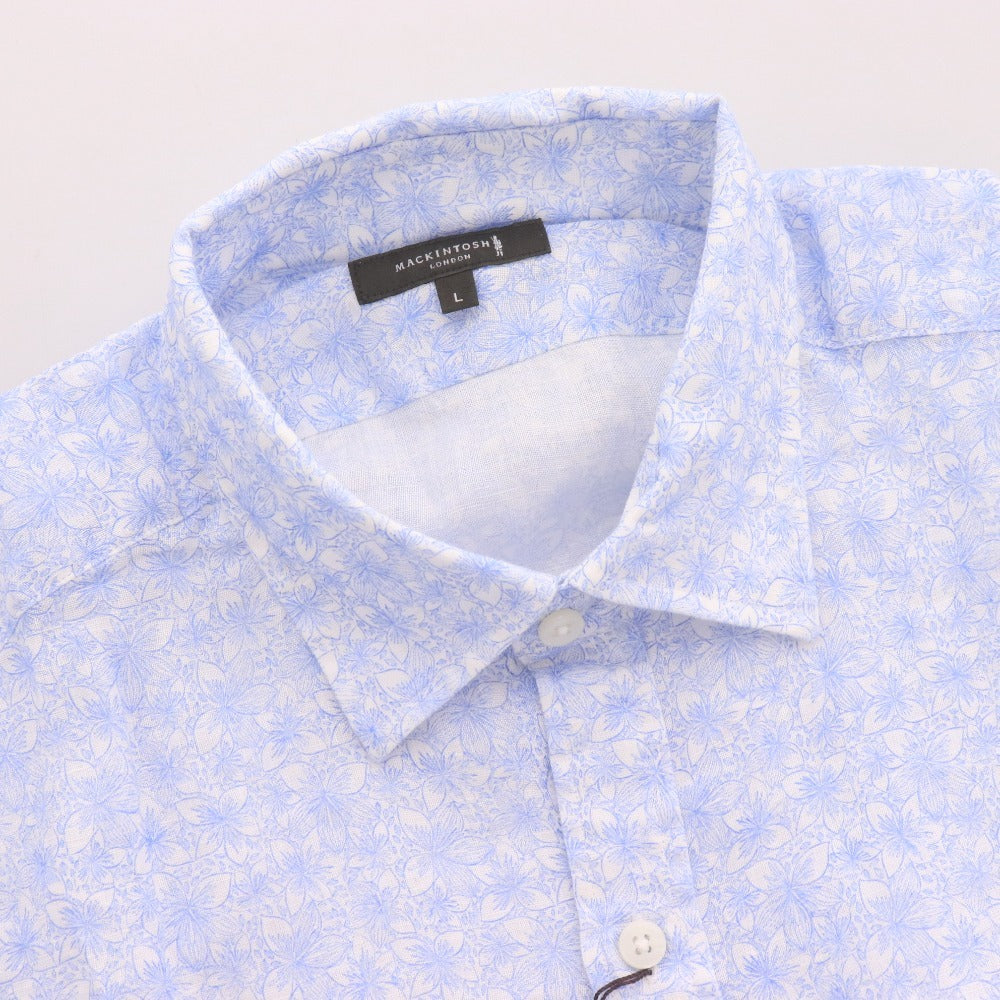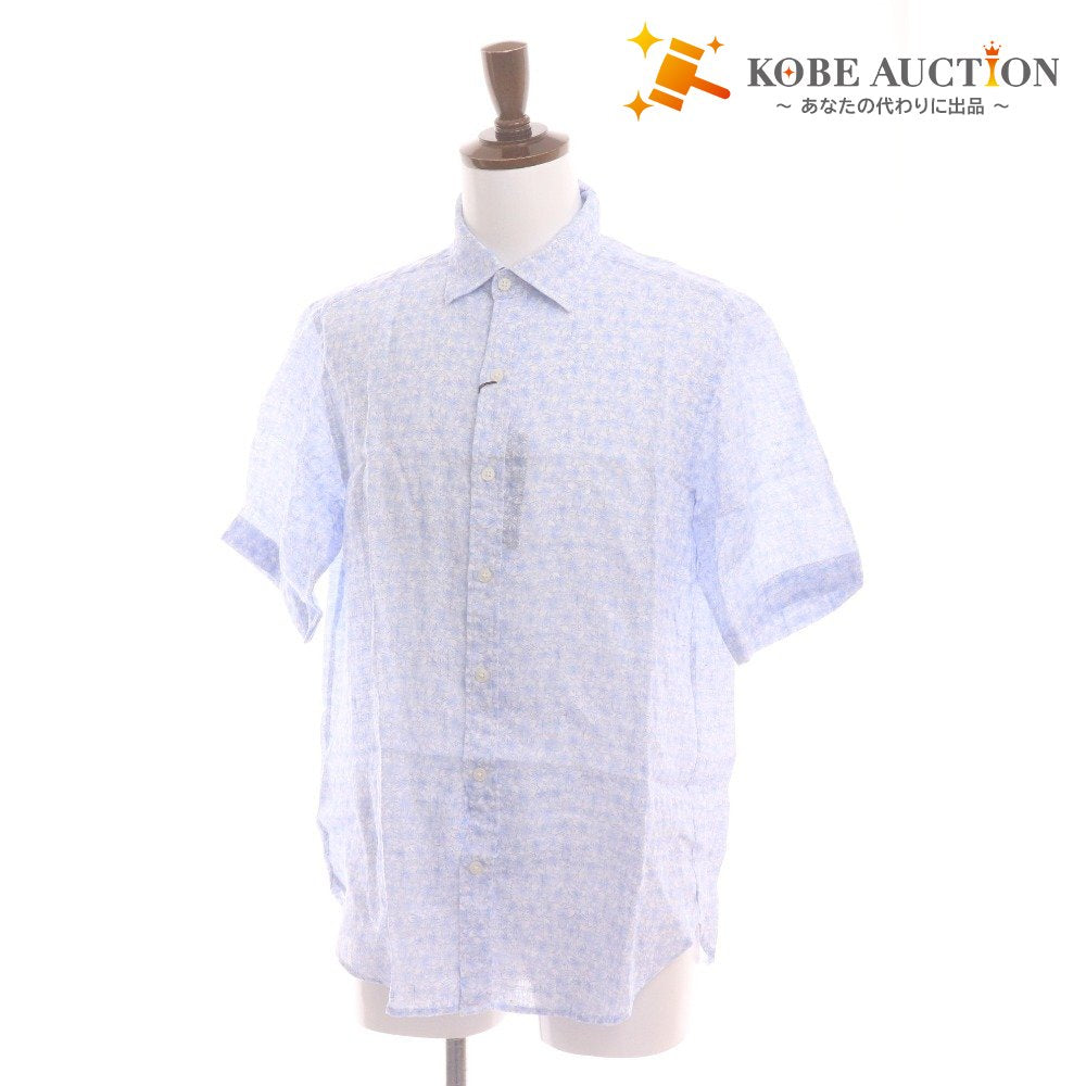 マッキントッシュロンドン シャツ 半袖 トップス 花柄 総柄 麻100% メンズ L ライトブルー ホワイト タグ付き 未使用