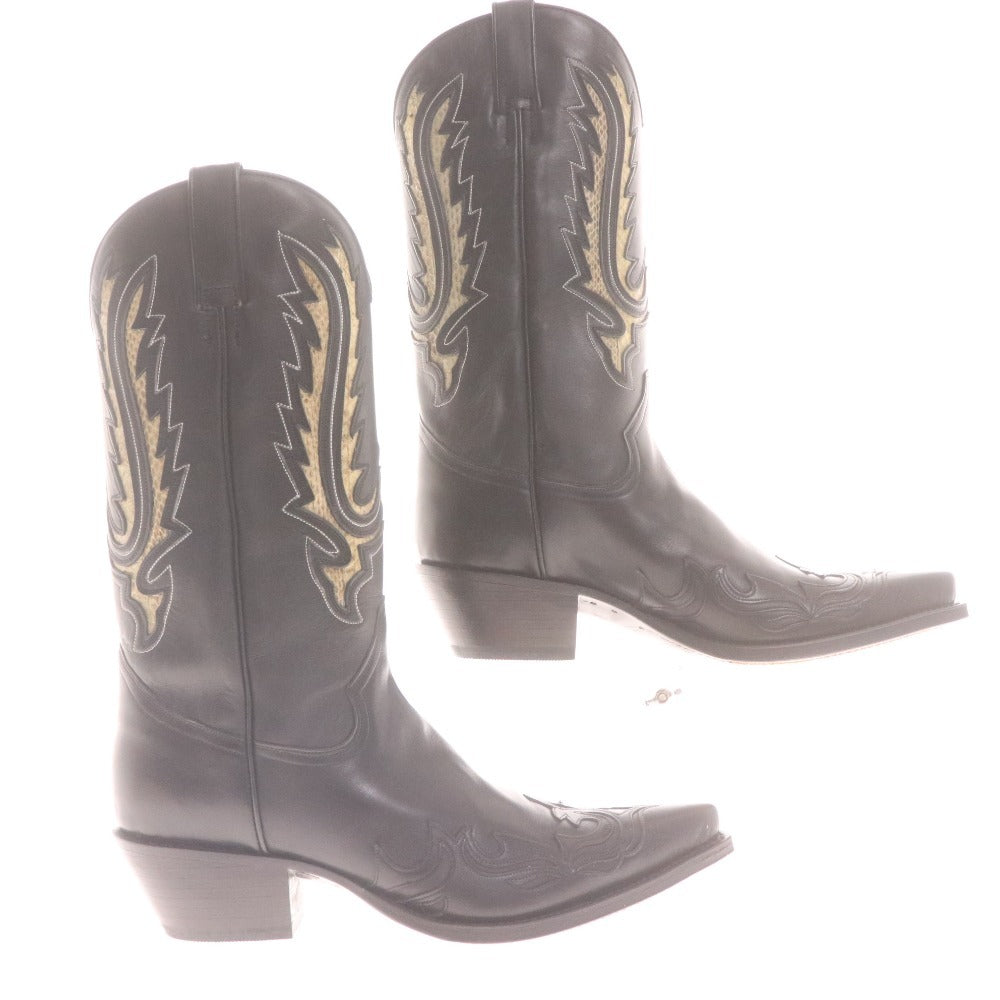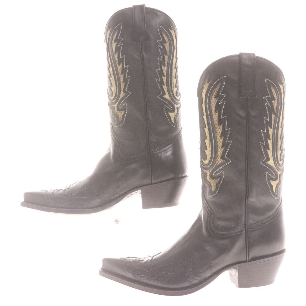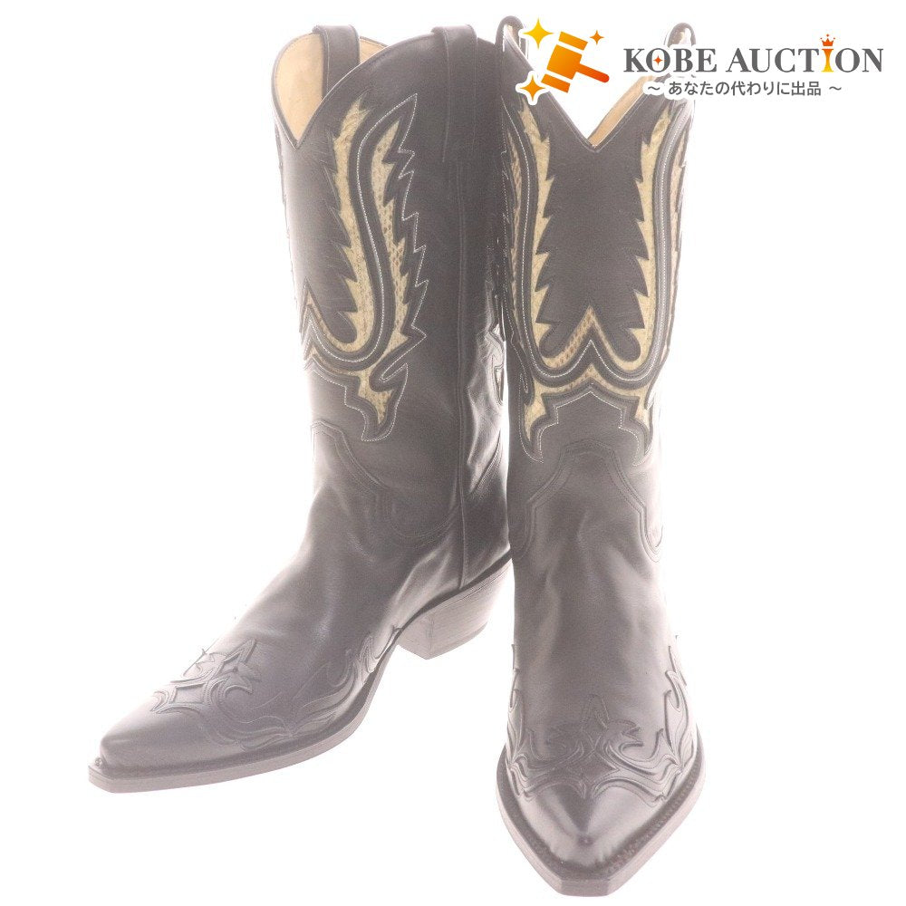 TONY MORA トニーモラ ウエスタンブーツ 2326 靴 牛革 ミドル ウィング 蛇柄 メンズ レディース 40 (25.0cm相当) ブラック 付属品付き