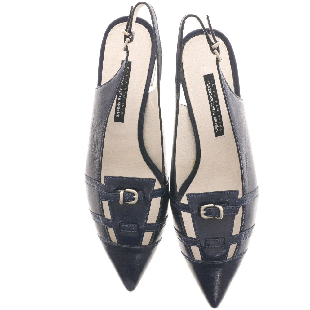 ネイビーのラボキゴシのパンプスが25cmになります。