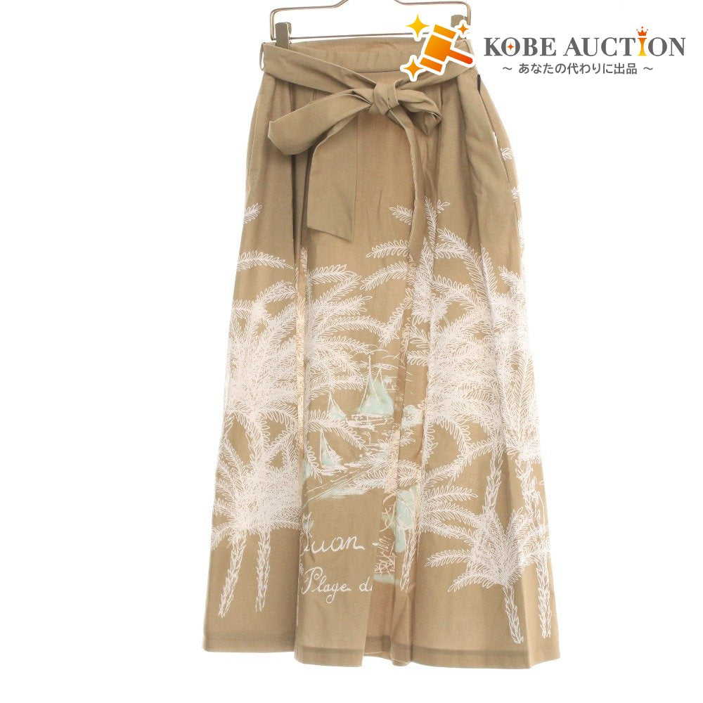 グレースコンチネンタル スカート 0225221023-00 ボトムス プリント 植物 柄 紐 レディース 3-38 ベージュ系 新品 未使用