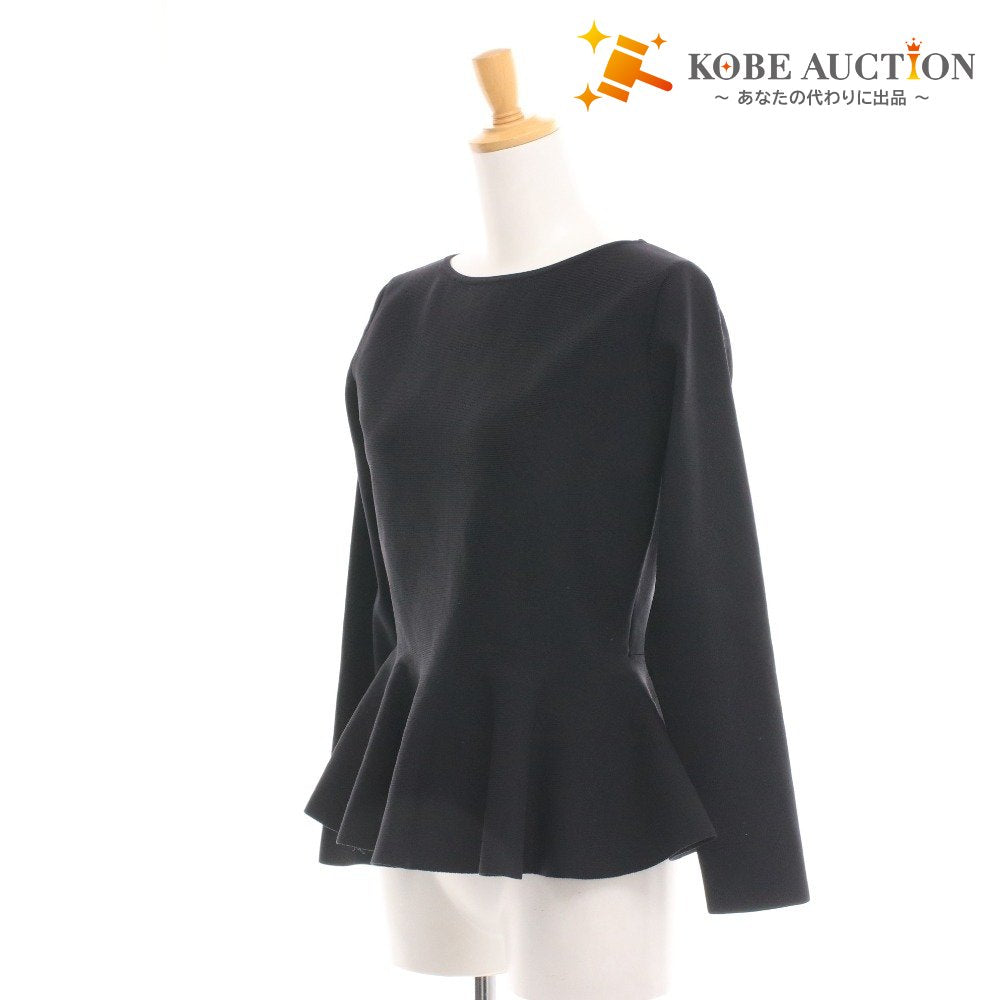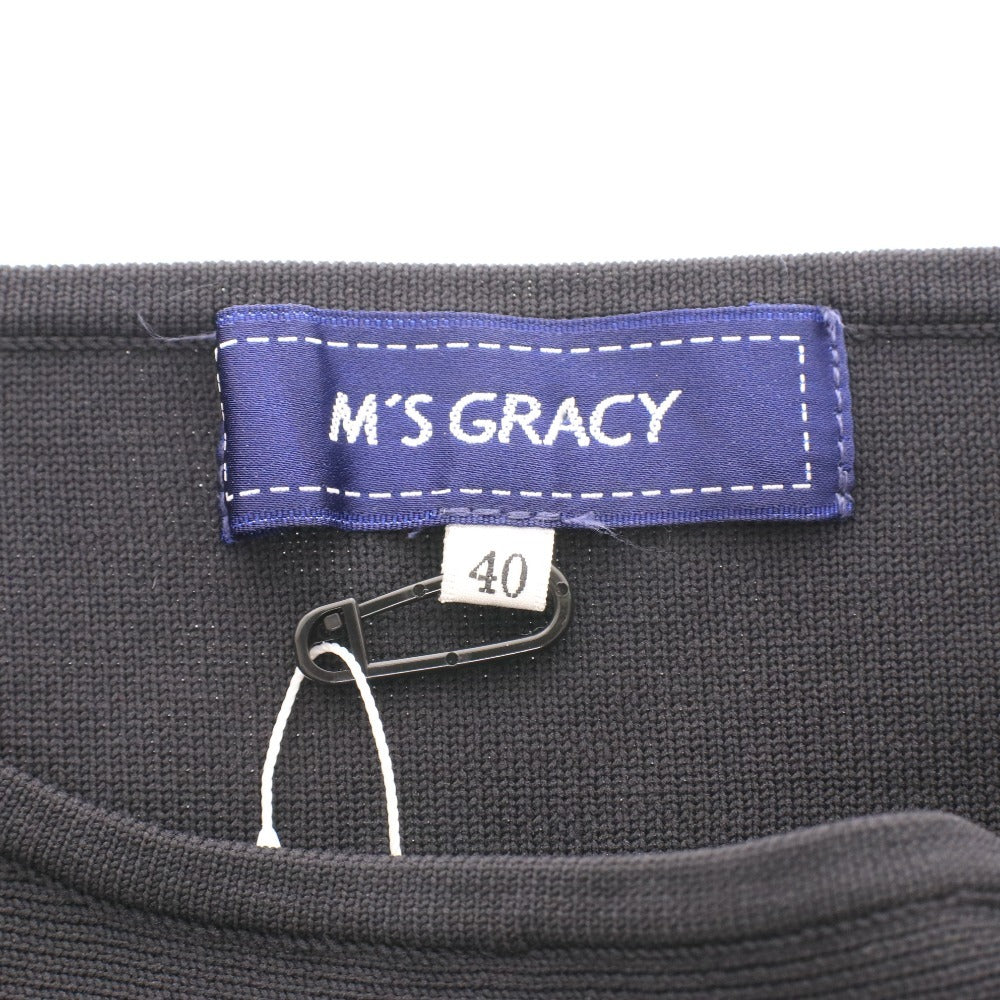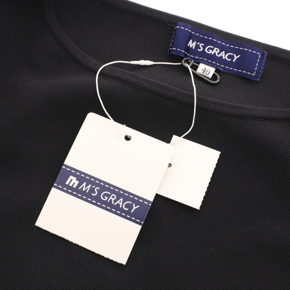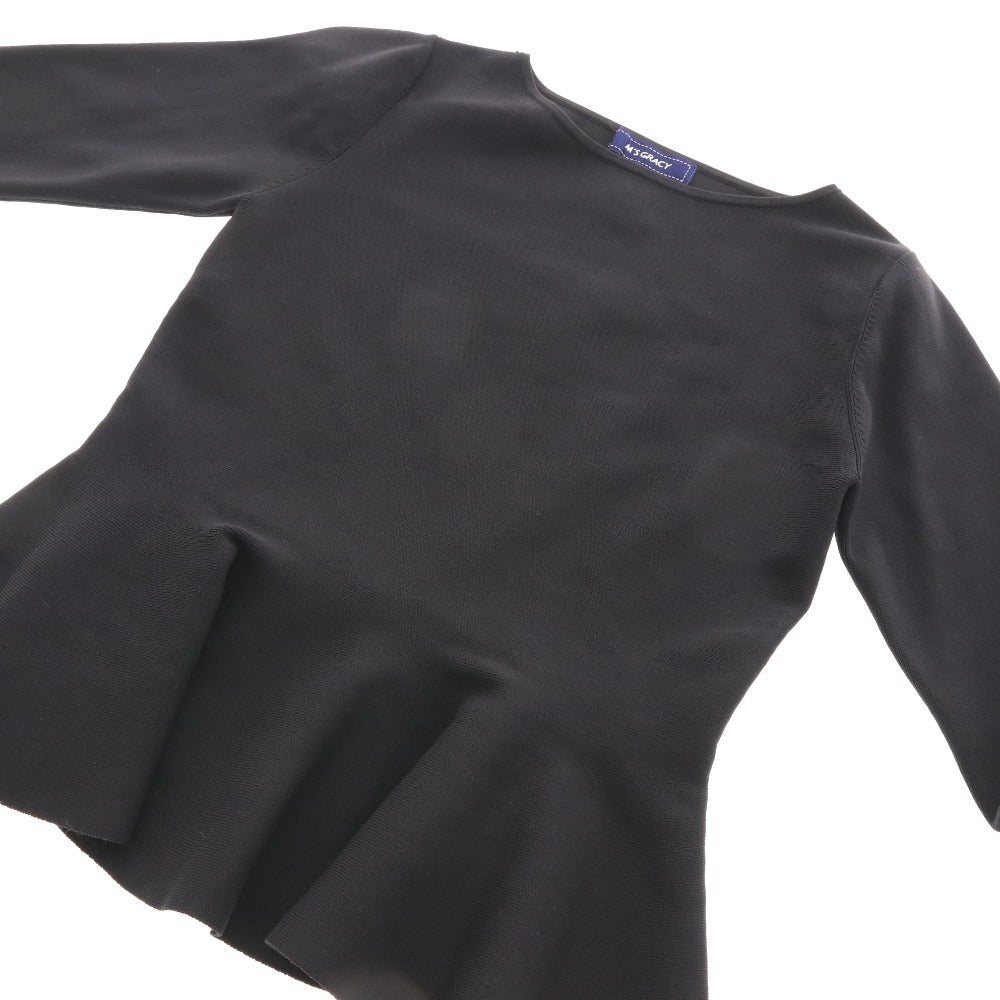 エムズグレイシー ペプラムトップス 長袖 MK-118707 トップス リボン グログラン スリット レディース 40(L相当)タグ付き ブラック