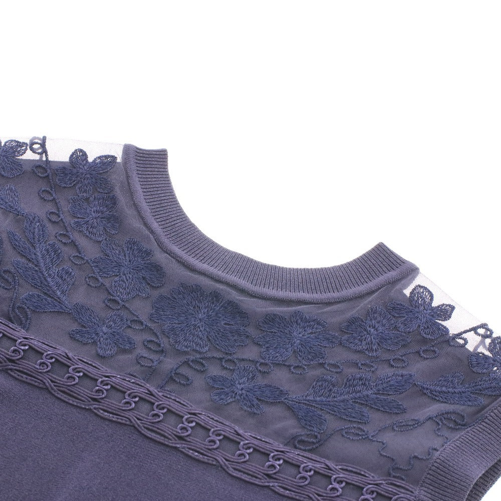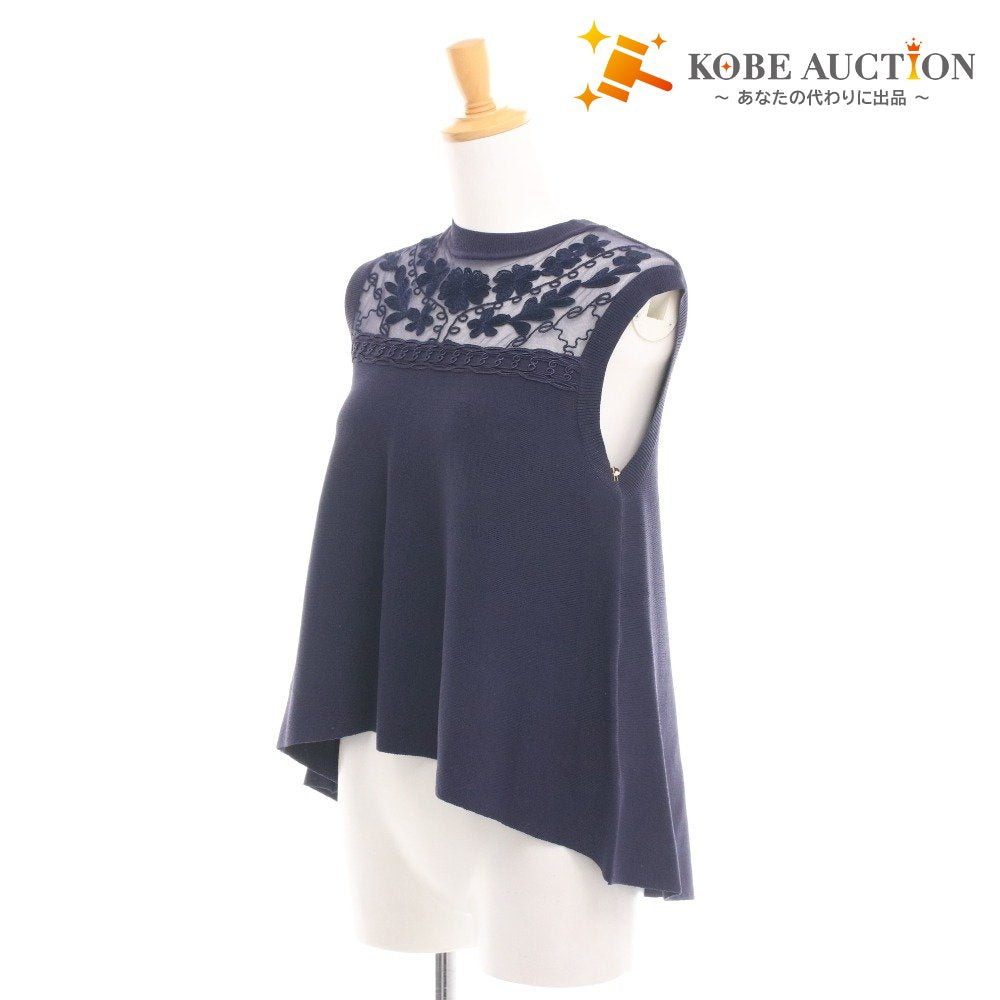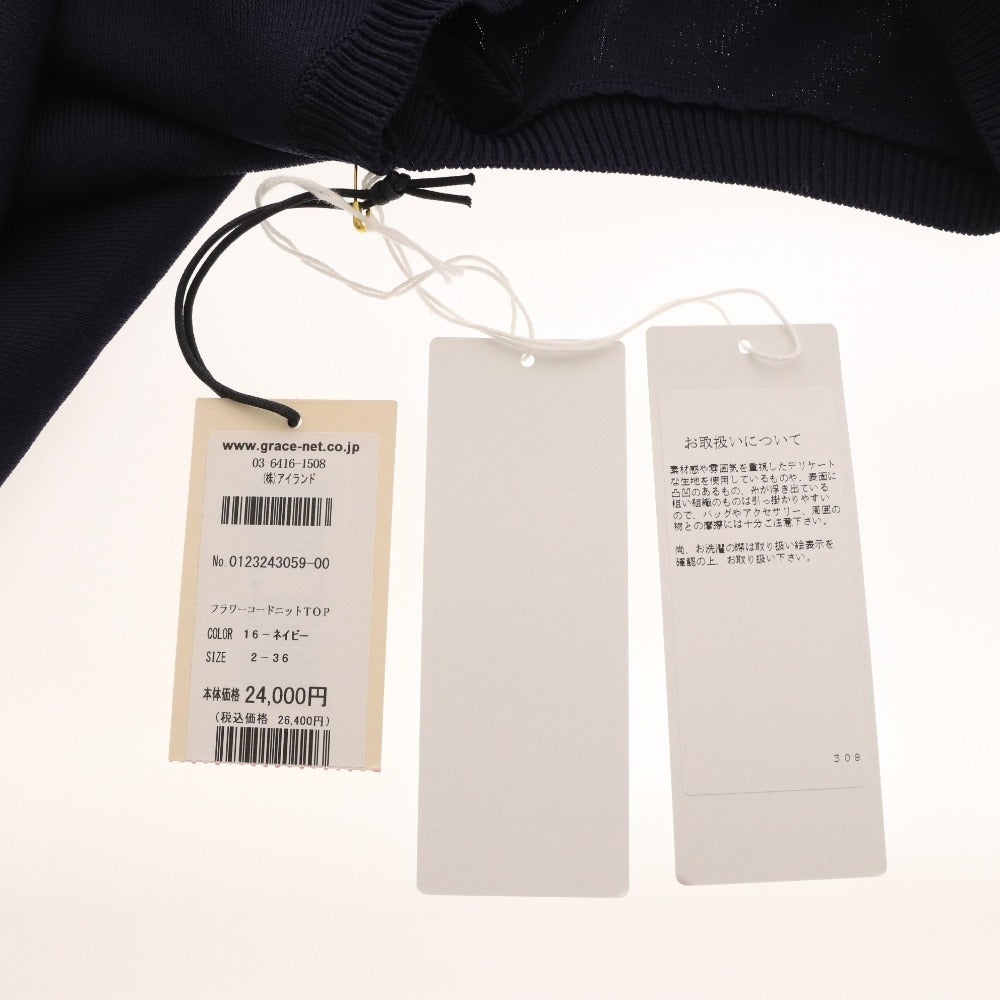 グレースコンチネンタル ニット ノースリーブ 0123243059 トップス レース フレア レディース 36(S相当) ネイビー タグ付き 未使用