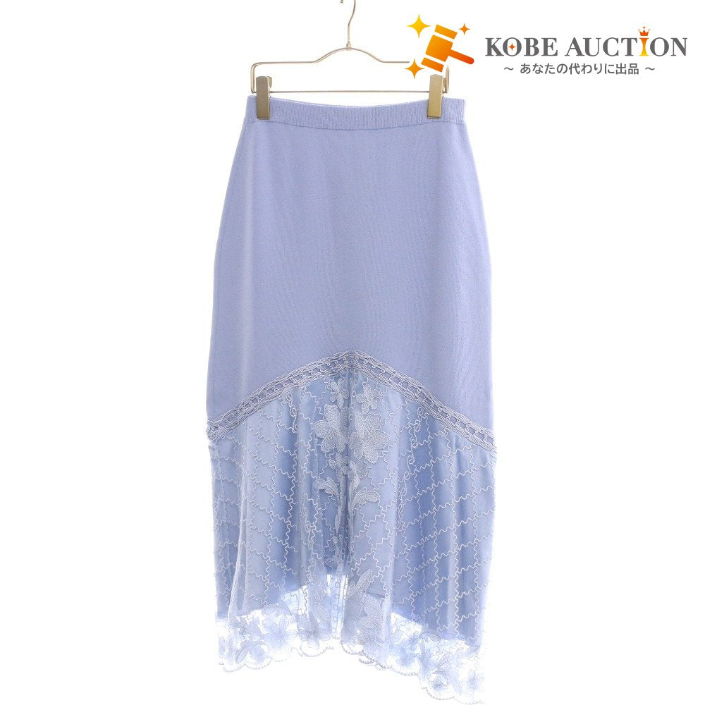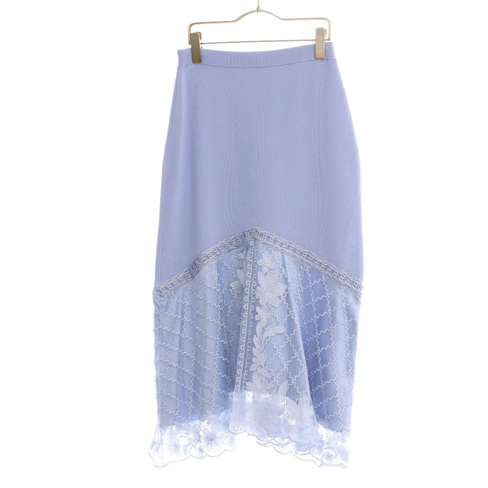 グレースコンチネンタル ロングスカート 0123223059 レース フラワー ニット レディース 36(S相当) ライトブルー タグ付き 未使用