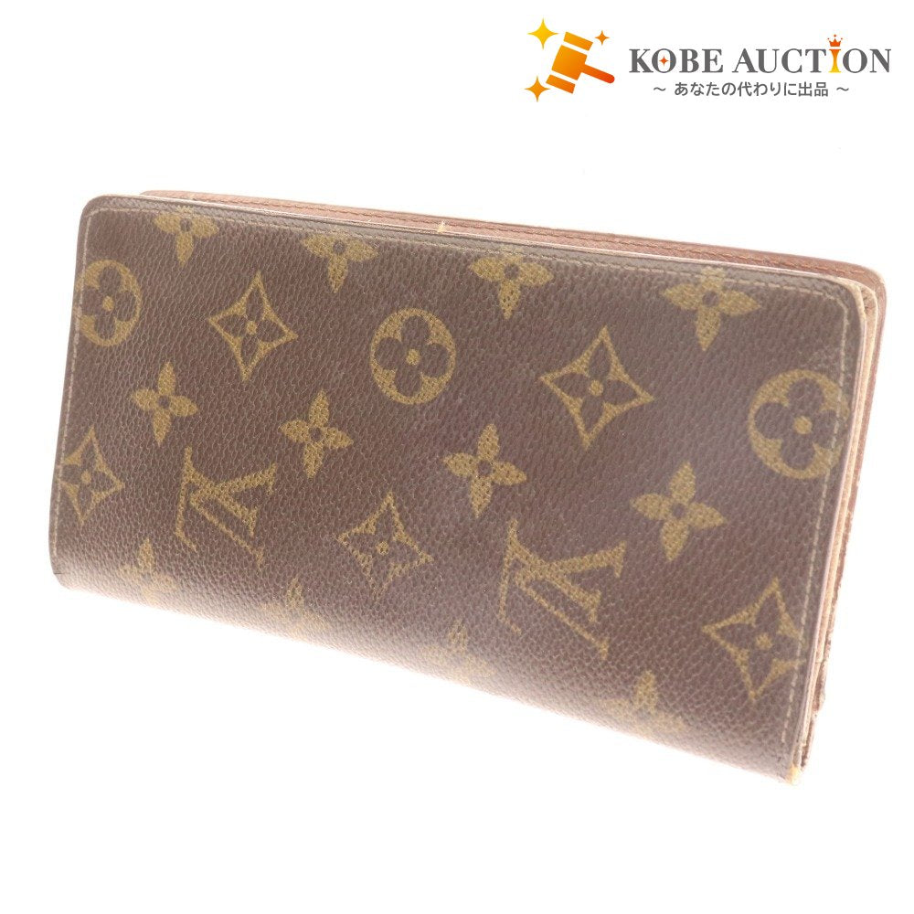 ルイヴィトン 二つ折り 札入れ 長財布 モノグラム ポルトシェキエ カルトクレディ メンズ レディース ブラウン シリアル番号あり