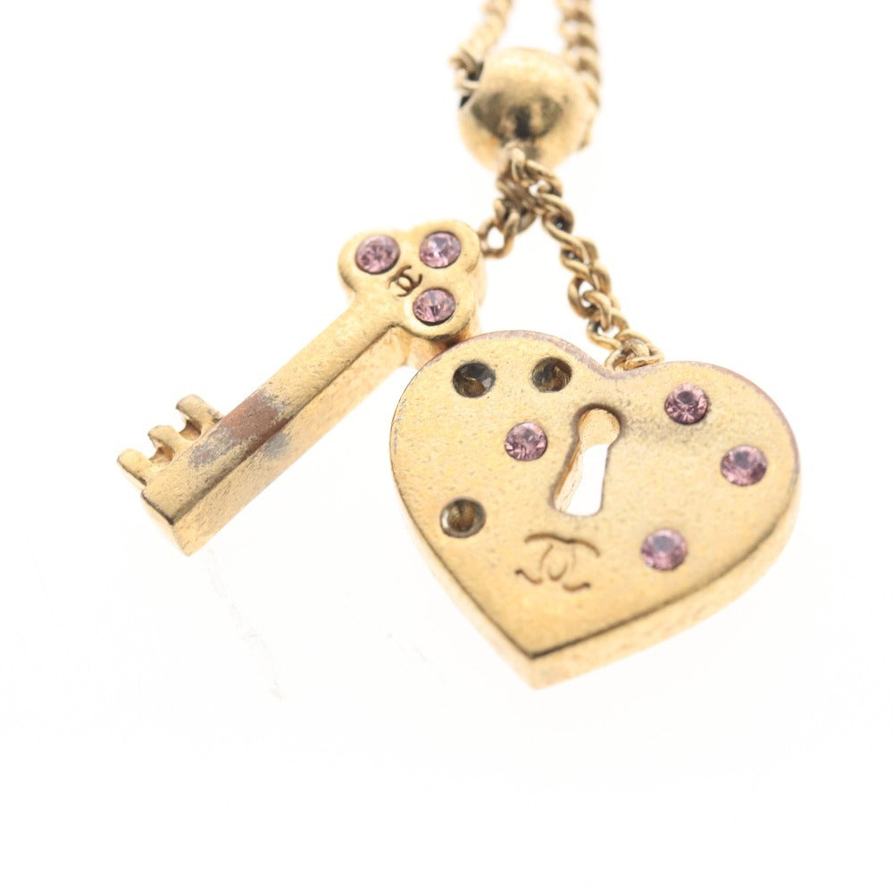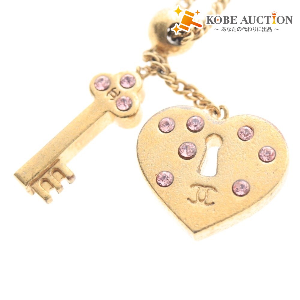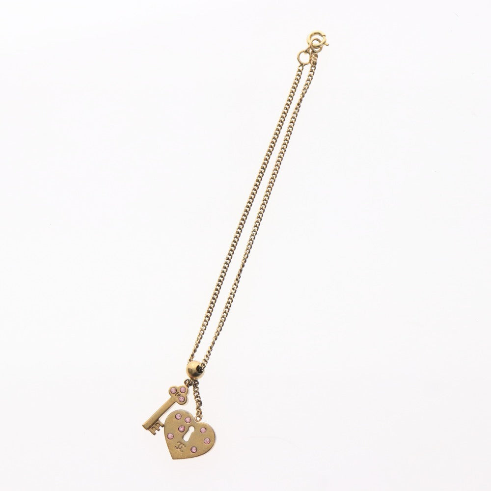 シャネル ブレスレット アクセサリー 02P ココマーク ハート キー 鍵 ラインストーン イタリア製 重量7g ゴールド