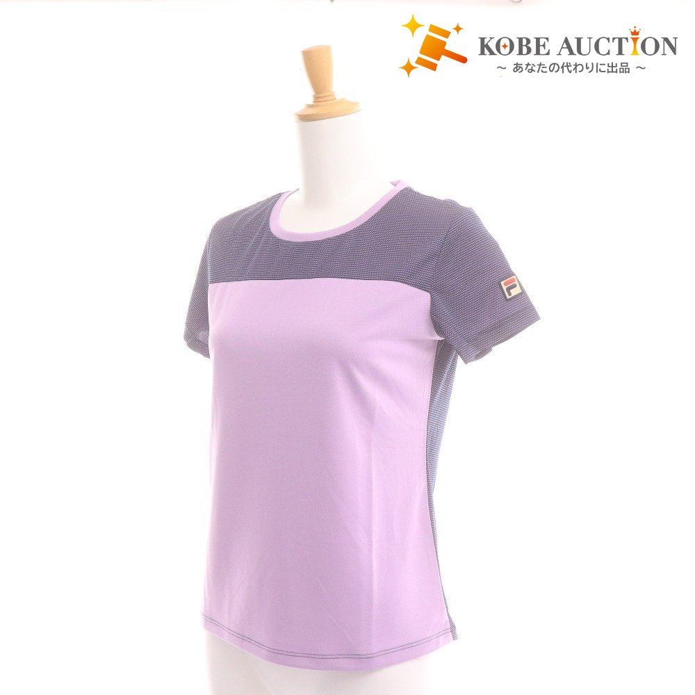 FILA フィラ テニスウェア Tシャツ 半袖 トップス 総柄 ロゴ プリント ランニングウェア レディース M ライトパープル タグ付き 未使用