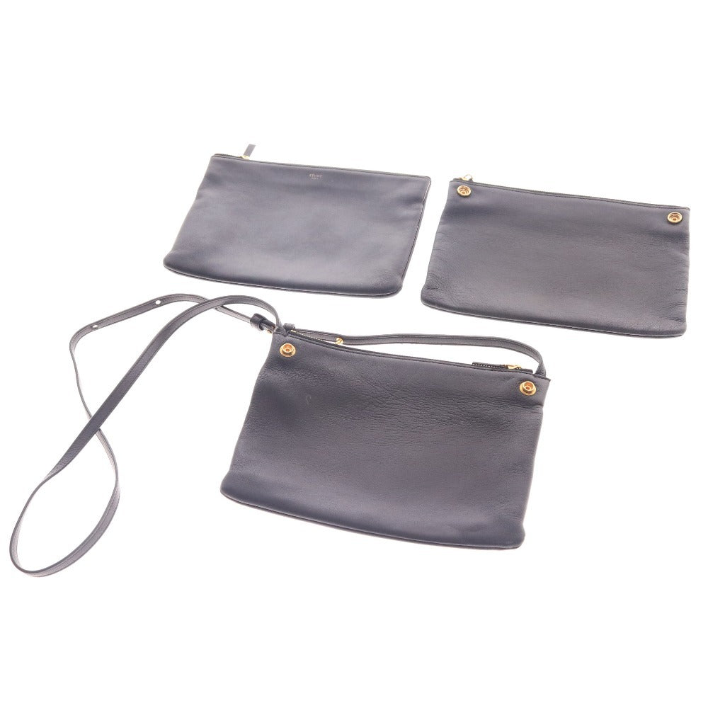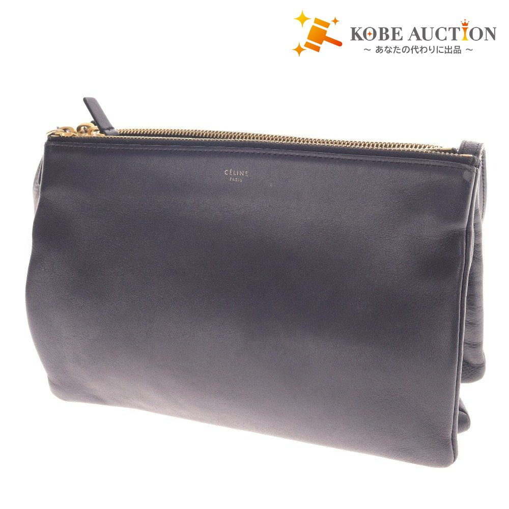 セリーヌ トリオ ラージ ショルダーバッグ 鞄 斜め掛け ゴールド金具 レディース ブラック