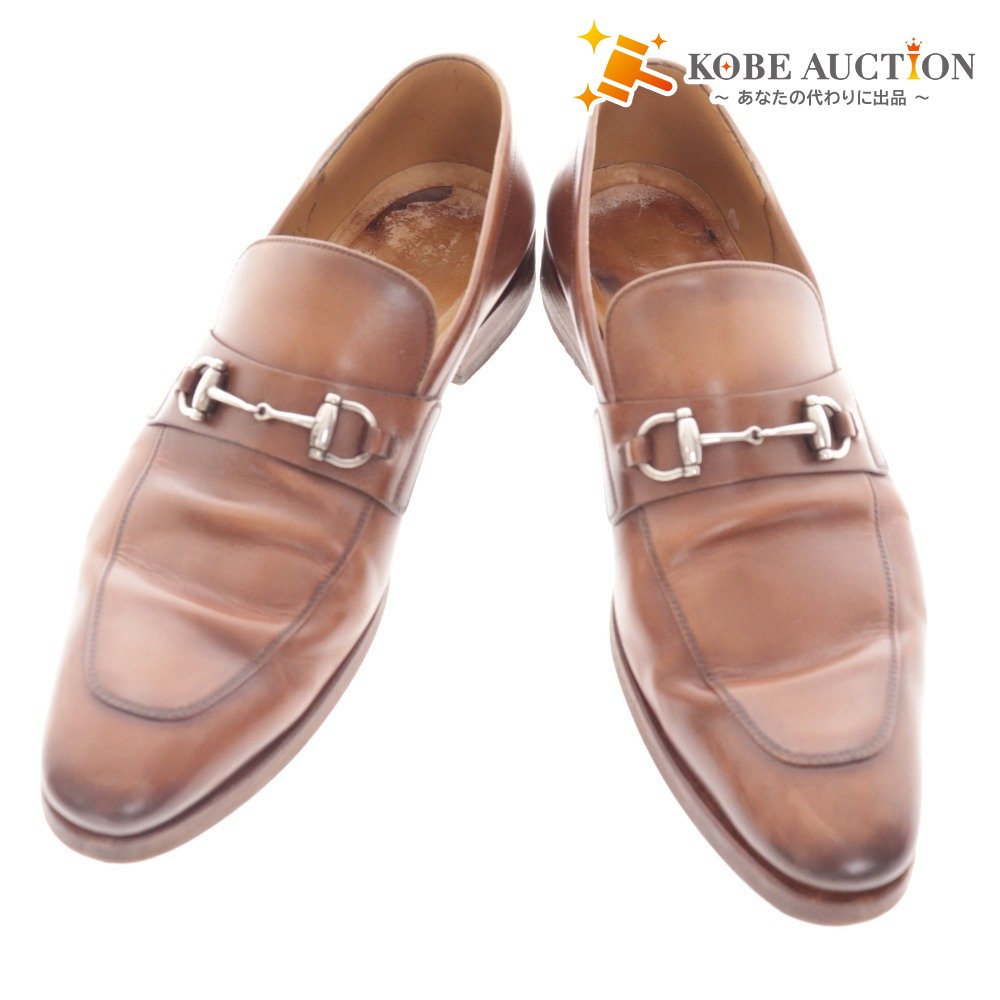 グッチ ローファー 459301 靴 ローカット ホースビット 金具 メンズ 8 1/2 ブラウン