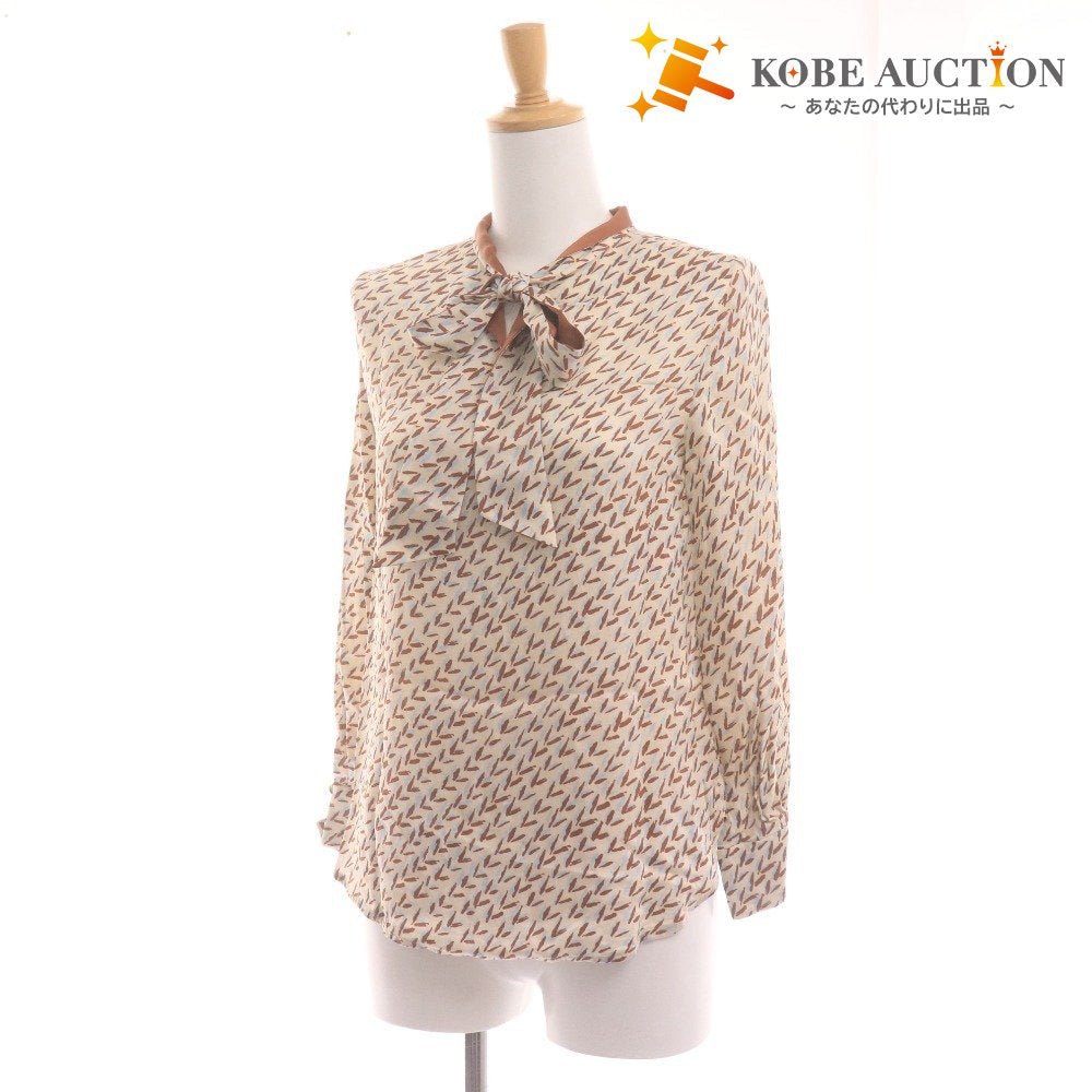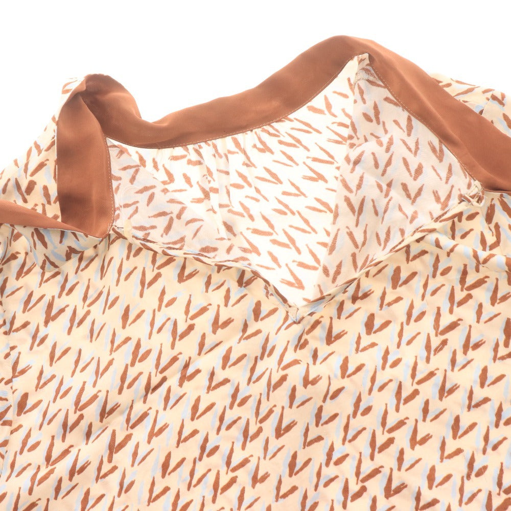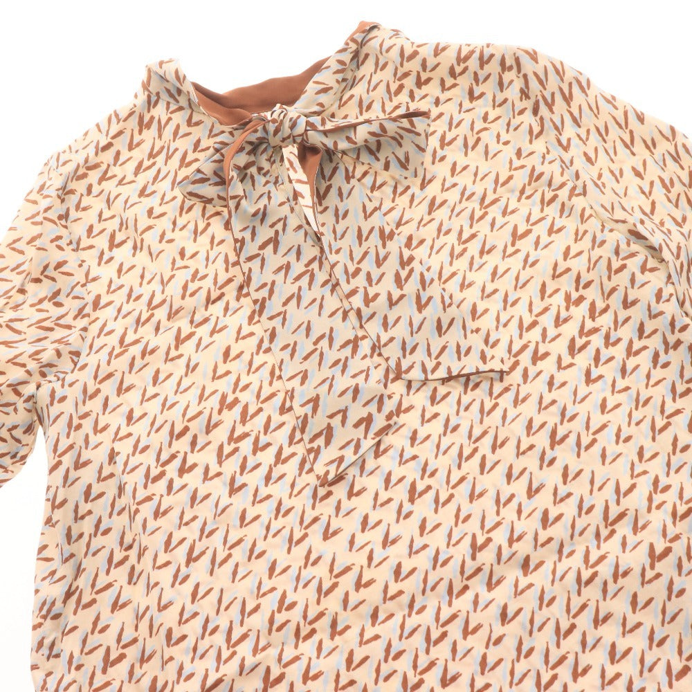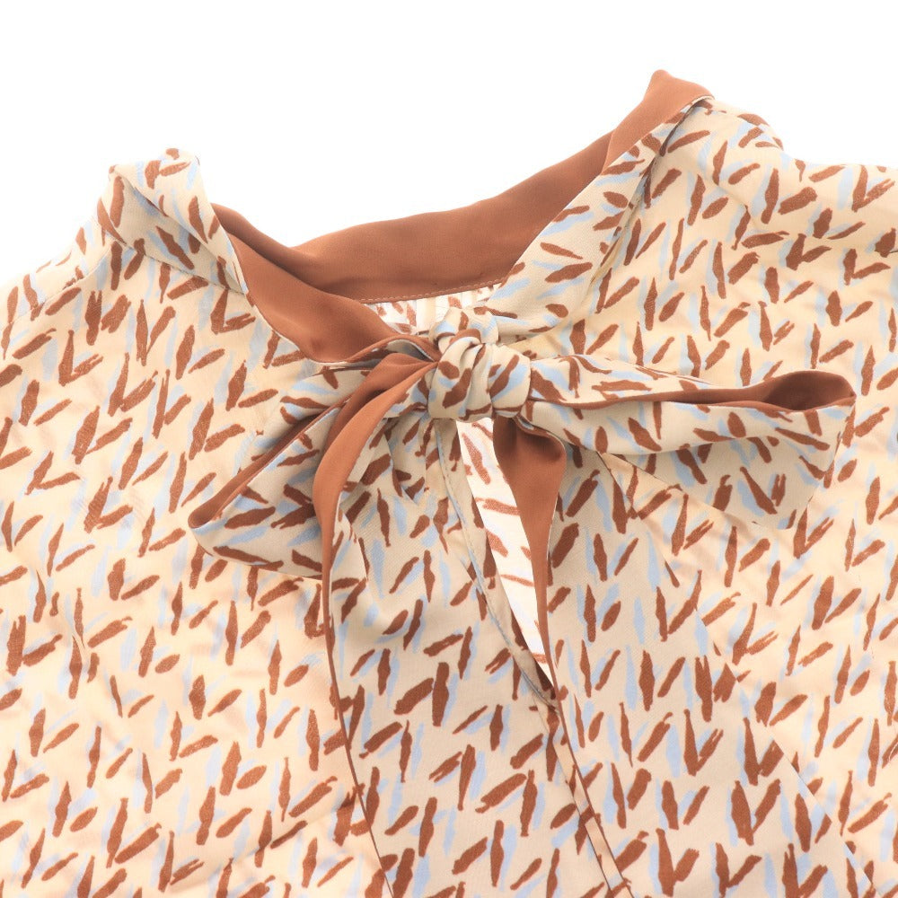ANAYI アナイ ボウタイシャツ 半袖 トップス プルオーバー 襟 総柄 日本製 レディース 36 ライトベージュ ブラウン ライトブルー