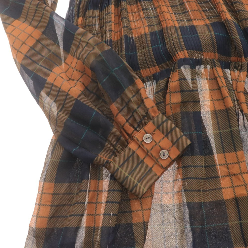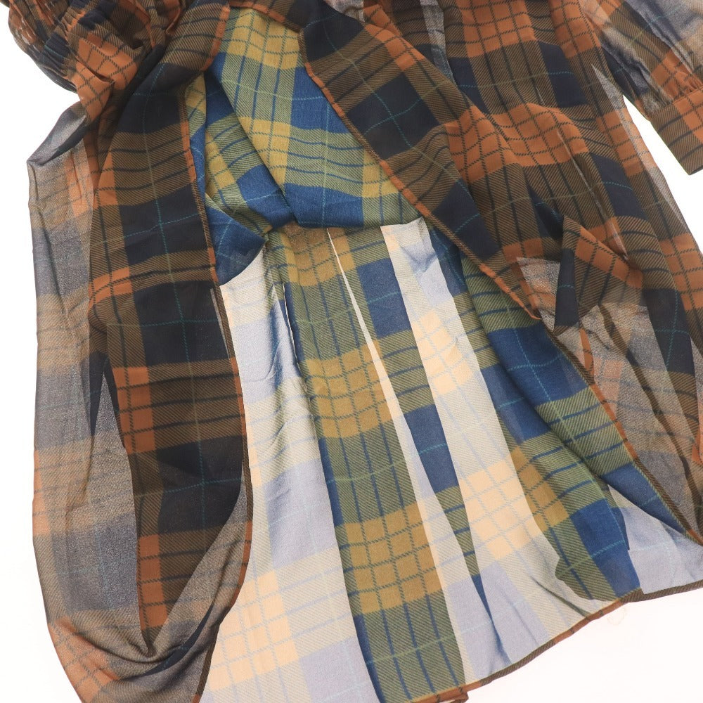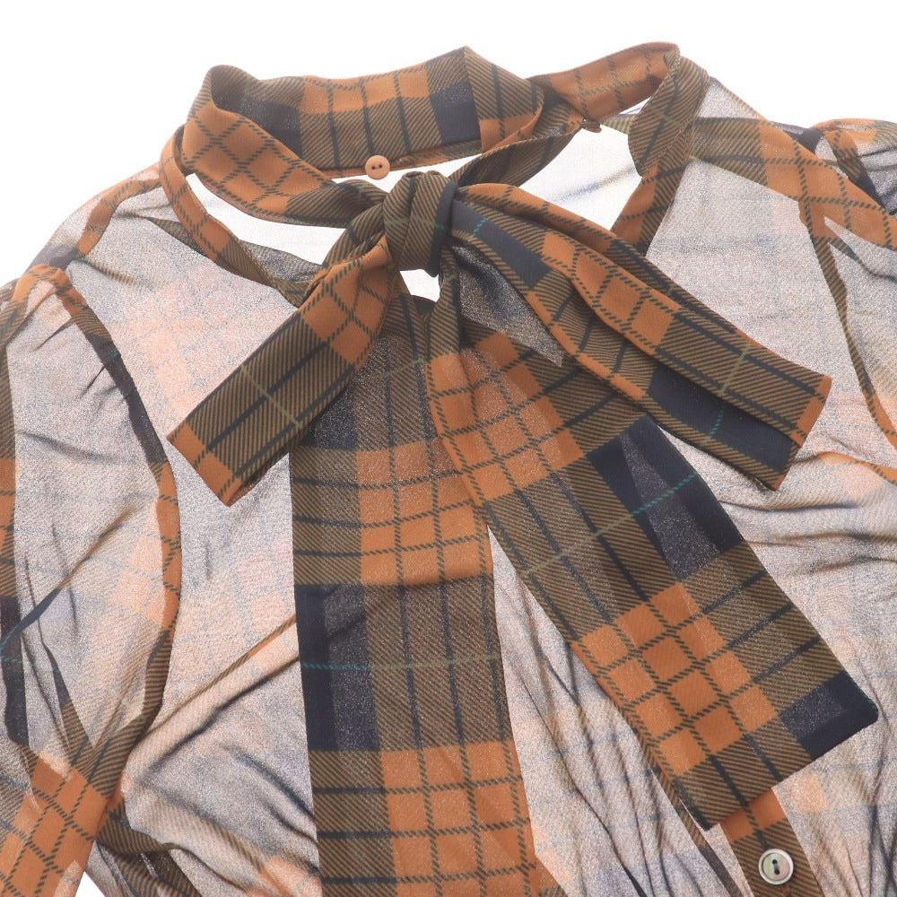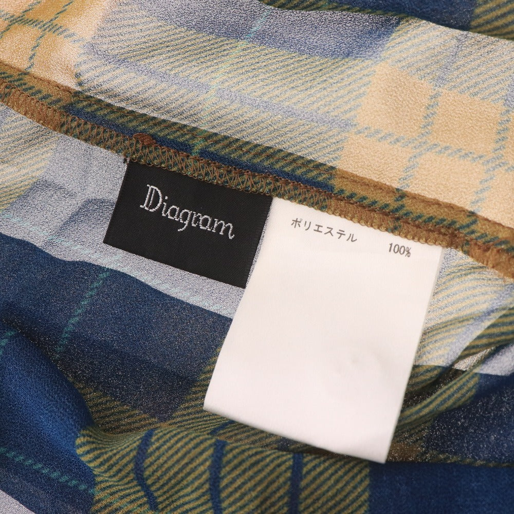 ダイアグラム ロングワンピース 長袖 トップス ボウタイ 着脱式 フロントボタン チェック柄 ベルト レディース 36 ブラウン ネイビー