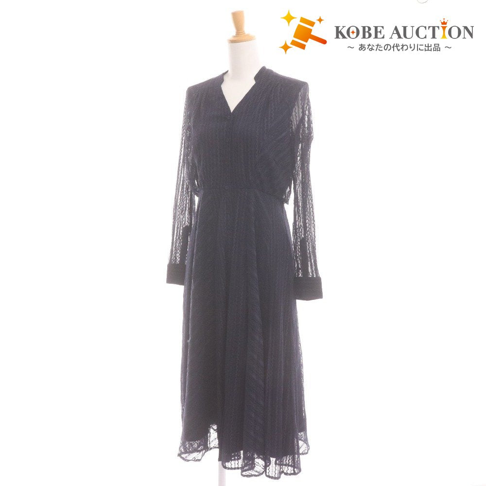 CELFORD セルフォード ロングワンピース 長袖 ジャケット トップス アウター マキシ丈 レース 総柄 レディース 36 ダークネイビー